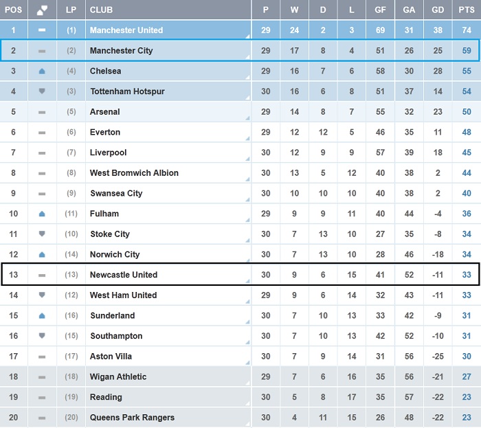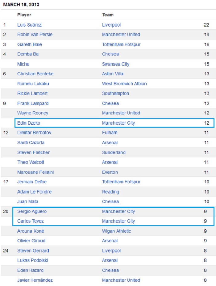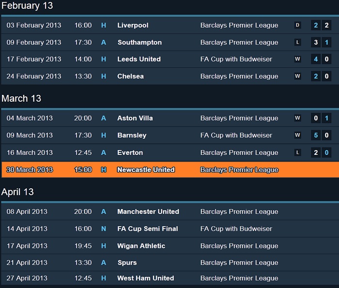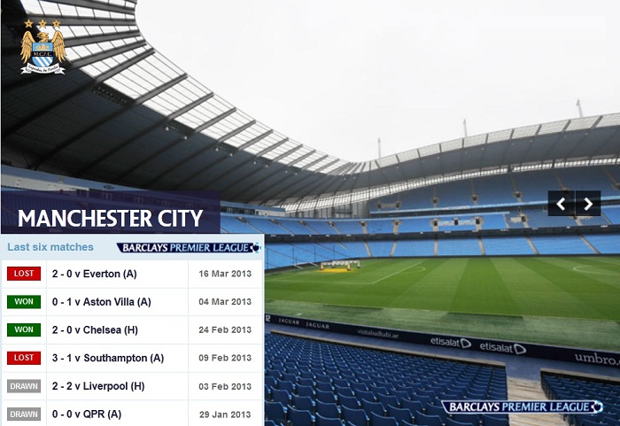 โปรแกรมและผลการแข่งขัน Manchester City ฤดูกาล 2012/2013