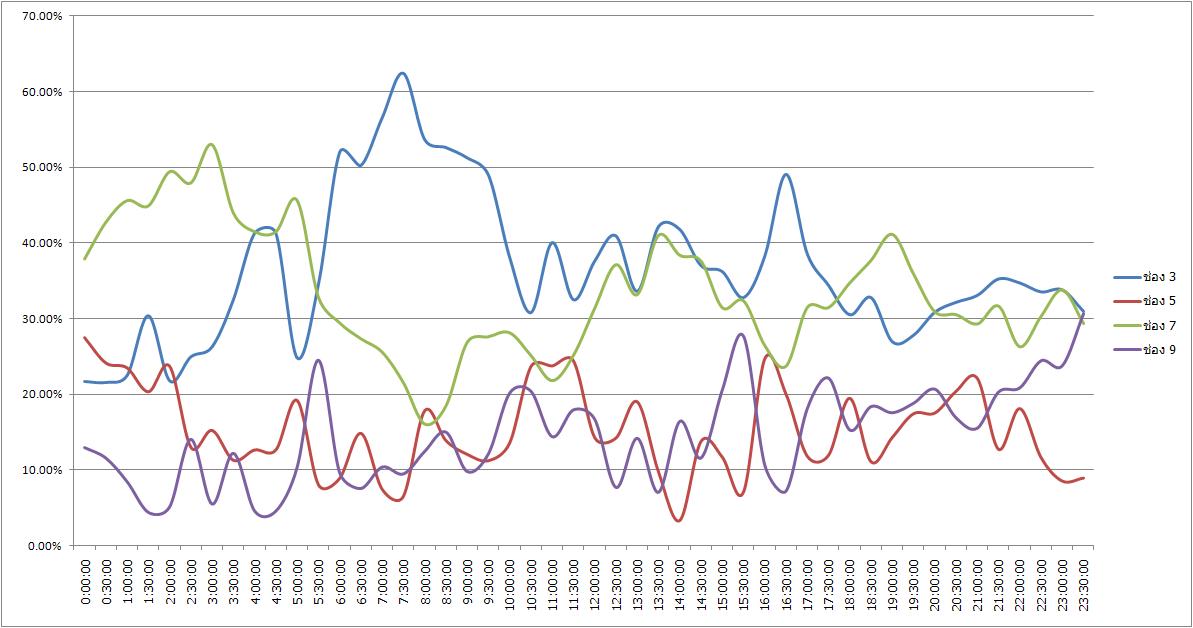 ศึกษา "เฉพาะ ผู้ชมช่อง 3 5 7 และ 9 " ในช่วงเวลานั้นๆ