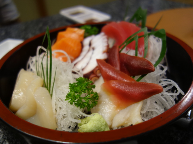 จัดมาในจานอย่างสวยงาม สำหรับเนื้อปลา สดมาก หอยปีกนก ก็รสชาต ดีเยี่ยม จิ้ม กับโชยุ และ วาซาบิ ที่ฉุนได้ใจ