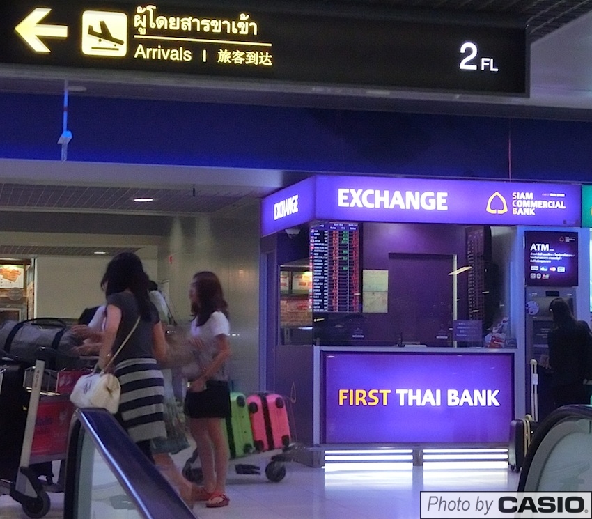 พอขึ้นมาจากสถานี Airport Link ก็เจอส่วนเชื่อมต่อสนามบินเห็นบูธแลกเงิน SCB กะว่าจะแลกเงินปอนด์อยู่พอดี แต่อาจารย์สิงห์รอเช็คอินพร้อมพาพันอยู่เลยต้องรีบวิ่งไปขึ้นลิฟอย่างด่วนจี๋ ที่ชั้น 4 ผู้โดยสารขาออกเห็นมีบูธแลกเงิน SCB อยู่ 2 จุดครับ พอผ่าน Immigration เรียบร้อยแล้วพาพันก็ตัวเบาขึ้นเพราะเหลือเป้หิ้วขึ้นเครื่องใบเดียวคร้าบบบ ทีนี้ก็มองหา SCB Exchange Booth พาพันจะแลกเงินด้วยบัตรเครดิตครับ