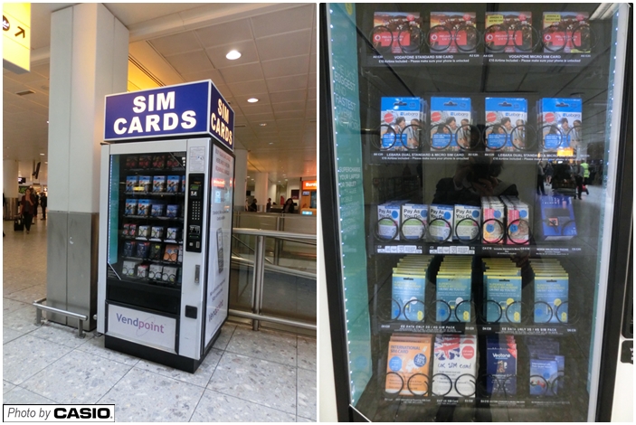 มีตู้ซิมมือถือหลายจุดตรงบริเวณส่วนผู้โดยสารขาเข้า ใครที่มาถึงแล้วต้องการก็สามารถซื้อซิมได้เลยครับ มีหลาย package หลายราคาให้เลือกครับ เริ่มต้นที่ 20 ปอนด์ แต่พวกเราไม่มีใครซื้อ คิดว่าจะแวะไปซื้อที่ร้านตอนเข้าเมืองแทน แต่ปรากฏว่าไม่ได้ซื้อกันซักซิมพวกเราจึงไม่สามารถติดต่อกันได้หากคลาดกันหรือหลงกัน และวิธีการตามหาระหว่างพวกเราขณะเดินทางจึงกลายเป็นเรื่องที่ลุ้น สนุกไปอีกแบบครับ