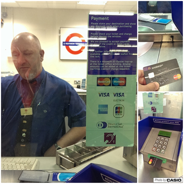 Oystercard สามารถซื้อเองได้ที่ตู้หรือที่เคาเตอร์ก็ได้ครับ พี่คุณพาพาพันไปที่เคาเตอร์เพื่อสอบถามว่าพวกเราควรใช้แบบไหนที่สะดวกและราคาประหยัด เจ้าหน้าที่หน้าเฉยแต่ใจเย็นมากอธิบายให้ฟังอย่างดีบอกความแตกต่างการใช้บัตรต่างๆ ยืนคุยพักใหญ่ก็ตัดสินใจเลือกซื้อแบบที่เหมาะกับพวกเรา 3 ใบ ใช้บัตรเครดิตซื้อได้ง่ายมากครับ และเจ้าบัตรหอยนี้เมื่อจะเดินทางกลับเมืองไทยสามารถเอาบัตรมาคืนที่สถานีใต้ดินของสนามบิน Heathrow จะได้ refund เงินค่ามัดจำบัตร 5 ปอนด์และเงินคงเหลือในบัตรคืนทั้งหมดด้วยครับ แต่อย่าลืมเก็บใบเสร็จที่ซื้อไว้ด้วยนะครับ เพราะอาจต้องใช้ตอนเอาบัตรหอยมาคืนคร้าบบบ