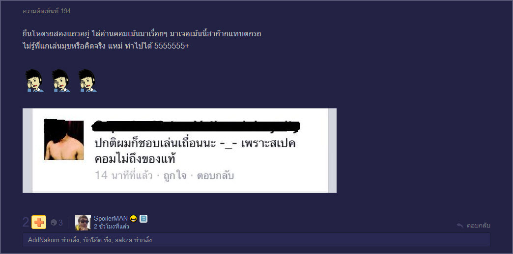 แต่ก็โอเคผมให้อภัยอยู่ละ อดีตผ่านไปอนาคตก็เข้ามาแต่ถ้ายังทำอะไรแปลกๆอีกละหมดอนาคตแน่ๆ ก็นะการเป็นเน็ตไอดอลนี่มันก็ควรจะรักษาภาพลักษณ์ไว้ด้วย อุตส่าห์มีคนมาเตือนว่าผิดลิขสิทธิ์แท้ๆ แทนที่จะขอบคุณคนเตือนและขอโทษคนอื่นๆ กลับกันแถไปถึงจ่า ถึงจ่าไม่โพสต์ลงเพจผมก็จะเป็นคนลงพันทิปอยู่ละเห็นแต่แรกแล้ว หากเดิมปากเสียอยู่แล้วก็ไม่ได้ว่าอะไรหรอกเพราะเวลาผมคุยกับเพื่อนๆก็หยาบกันสั_ๆหมดแหละครับ แต่ก็เอาเท่าที่เหมาะสมเพราะยังไงก็เป็นพื้นที่สาธารณะ (แม่มผมสอนไม่ดูตัวเองเลย กระทู้แรกนี้ผมจัดเต็ม! 555)