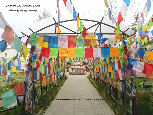 ประดับด้วยธงธิเบตเต็มไปหมดเลย มีความหมายเหมือนผ้ายันต์บ้างเรามั้ง