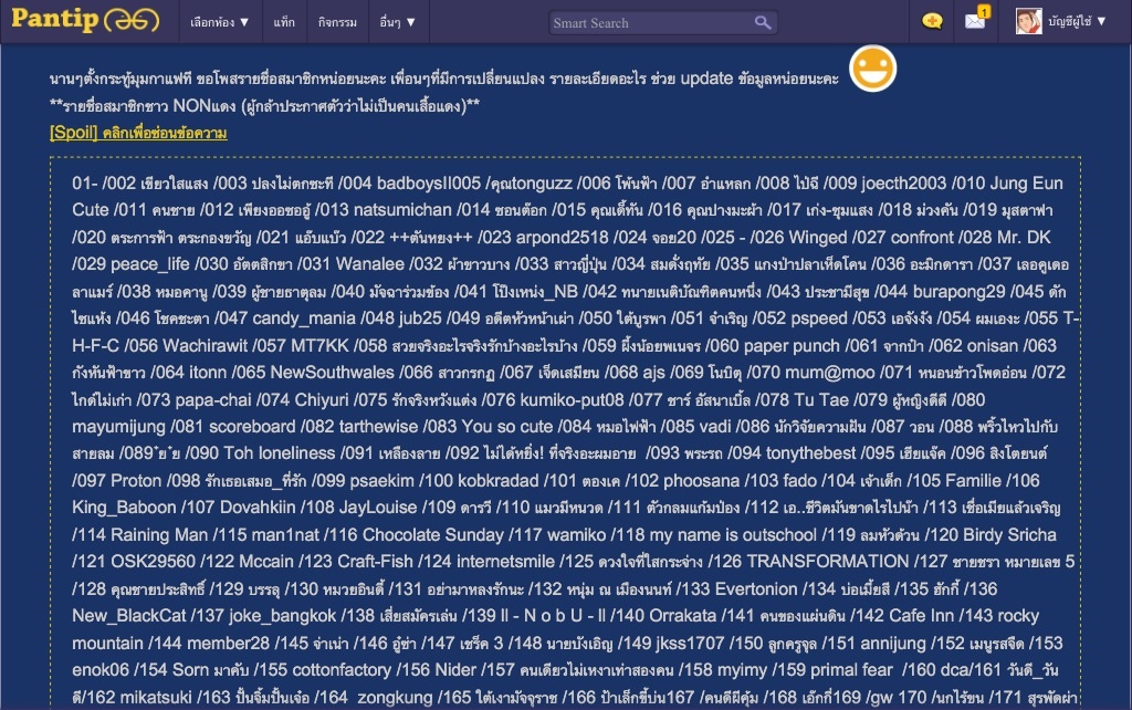 ผมไปเจอรายชื่อสมาชิกกลุ่มสลิ่มนันฯ ที่เขาแปะเมื่อ 2 เดือนเมษายนที่ผ่านมา มีหลายร้อยล๊อคอิน เริ่มจาก..