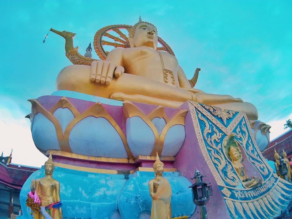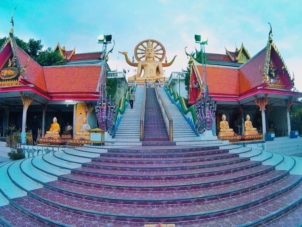 จากนั้นขี่รถย้อนมาทางไปสนามบินสมุยแต่ไม่ต้องเลี้ยวไปสนามบินให้ตรงมาเลย ไปไหว้พระกันบ้าง เข้าสโลแกน "เที่ยวแบบไทย ไปไหนต้องไหว้พระ" นี่คือวัดพระใหญ่ครับ