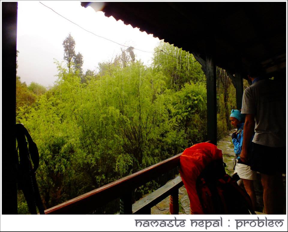 ซวยอีกแล้ว!!! เราเดินกันมาจนถึงจิตเตร อีกหมู่บ้านเดียวก็จะถึงโกเรปานิแล้ว แต่ความซวยไม่เคยปรานีใคร "ฝนตก!!!" หนักถึงหนักมาก และไม่มีท่าทีว่าจะหยุดลงง่ายๆ เรามาแวะพักหลับฝนกันที่บ้านพักร้างแห่งหนึ่ง กับสามีภรรยาฝรั่งอีกคู่หนึ่ง เราตั้งใจว่าจะรอฝนซาแล้วจะเดินกันต่อ แต่รอแล้วรอเล่าก็ไม่มีท่าทีว่าจะซาลงเลย แถมฟ้าก็เริ่มมืดลงเรื่อยๆ เราถามลูกหาบว่าถ้าเราจะเดินลุยฝนกันต่อจะเป็นยังไง คุณราชก็บอกว่ามันอันตรายมาก เพราะทางชัน อาจจะลื่นหินล้ม หรือถ้าโชคไม่ดีก็อาจจะเจอหิมะถล่มใส่ และระหว่างทางก็ไม่มีที่หลบฝนเลย เลยจำเป็นต้องตัดสินใจว่า คืนนี้เราคงต้องนอนกันที่นี่แล้วล่ะ จากที่ตั้งแผนไว้ว่าเราจะต้องไปนอนที่โกเรปานิ แล้วตื่นแต่เช้าขึ้นพูนฮิล กลายเป็นว่าเราต้องนอนที่นี่ แล้วพรุ่งนี้ตื่นแต่เช้า เดินไปโกเรปานิ ฝากกระเป๋าแล้วขึ้นปุนฮิลเลย ซึ่งก็จะไม่ทันดูพระอาทิตย์ขึ้น แต่ก็จำเป็นต้องเปลี่ยนแผน เพราะความซวยมาเยือนขนาดนี้แล้ว ขึ้นดันทุรังต่อไปอาจจะเจอความซวยขนาดใหญ่หลวงก็เป็นได้ สรุปแผนเสร็จก็เดินหาที่พักกัน และวันนี้พี่กบขอเข้าครัวและทำอาหารให้เรากินกัน ท่ามกลางแสงเทียน(ไฟดับ) ก็ดีนะในความซวยก็ยังมีความสุขให้เราได้รู้สึกบ้าง