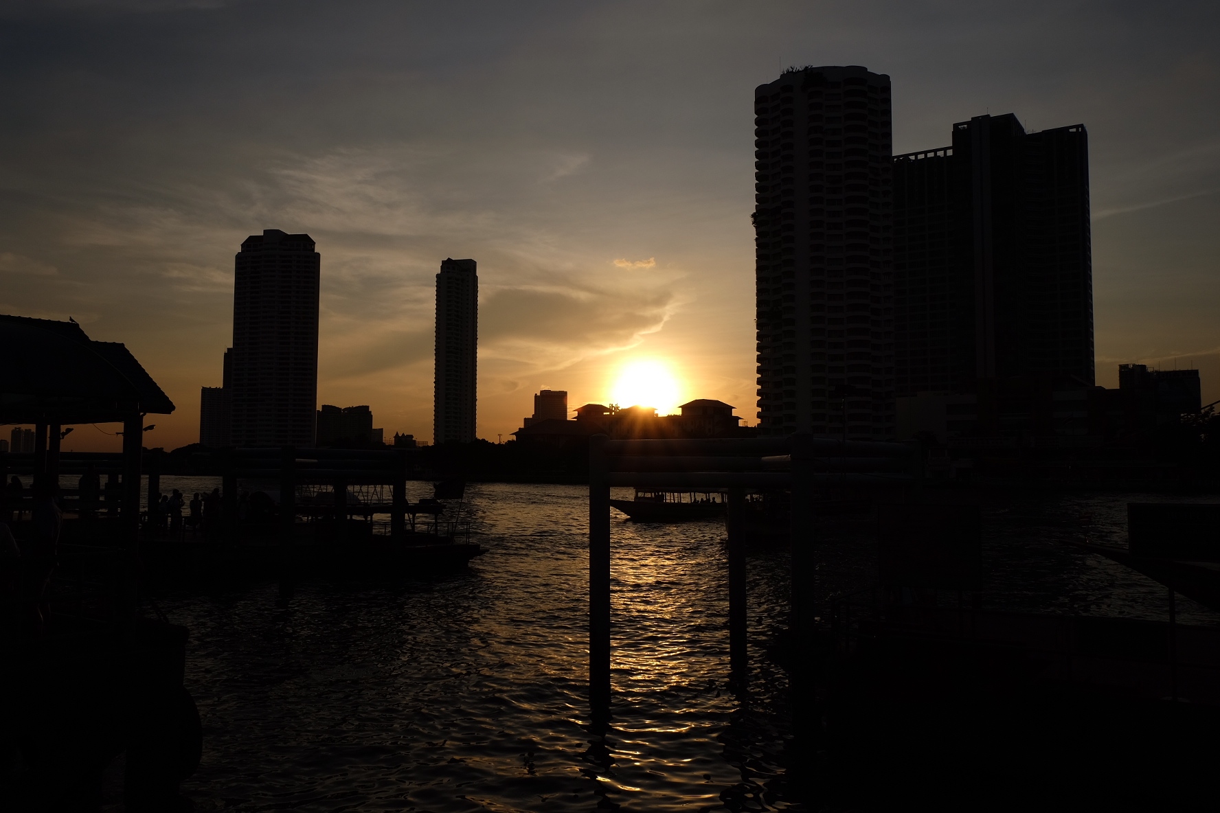 ตอนมาถึงท่าเรือสาธรเนี่ย เป็นเวลาช่วงที่พระอาทิตย์กำลังตกดินอยู่พอดีเลย อากาศก็ดี วิวก็สวย