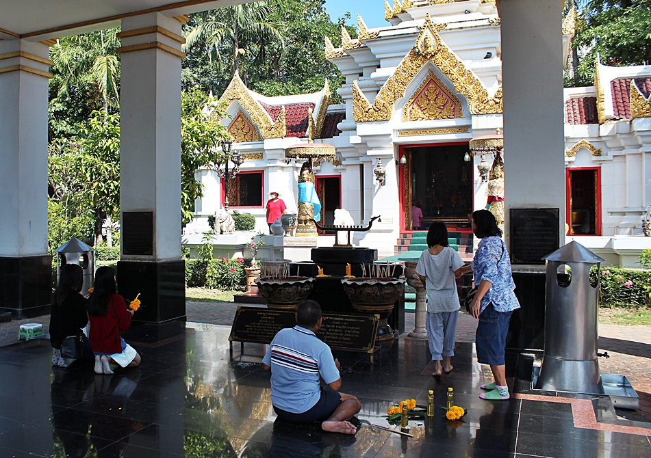 บรรยากาศภายนอกศาลพระแม่ย่า...คนเยอะพอสมควรครับ บ้างก็มาแก้บน บ้างก็มาขอพร....หลังจากผมกับเพื่อนซื้อดอกไม้ ธูปเทียน และน้ำมันเติมตะเกียงก็พากันมาสักการะพระแม่ย่าทางด้านนอกของศาล โดยธูปและเทียนที่จุดแล้วจะต้องปักลงอ่างทรายด้านนอกครับ