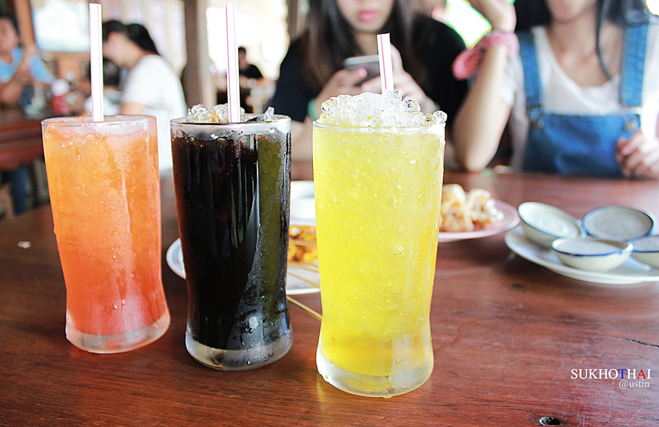 น้ำสมุนไพรจากซ้ายไปขวา…ชามะนาว น้ำกระเจี๊ยบ และน้ำเก๊กฮวย…ดูดเข้าไปเฮือบหนึ่งโอ้ยย ชื่นจายย