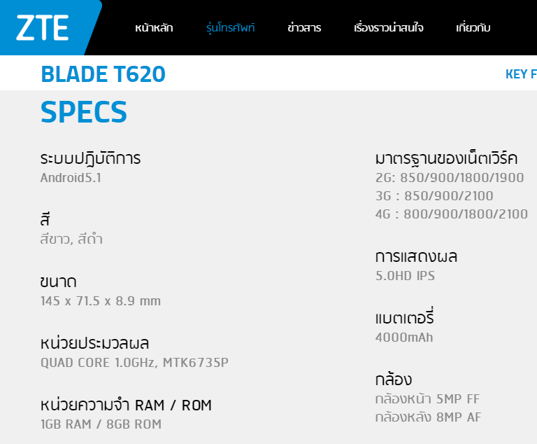 นำข้อมูลมาจาก : http://www.zte.co.th/product/normal/BLADE-T620
