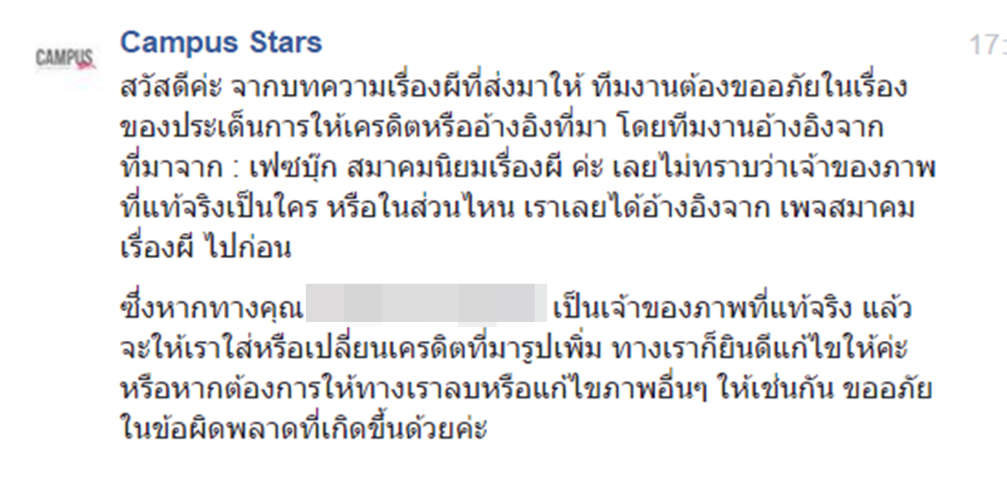 ซึ่งในความจริงแล้ว ทางเพจ สมาคมนิยมเรื่องผี ไม่มีการใช้ภาพประกอบของผมแต่อย่างใด
