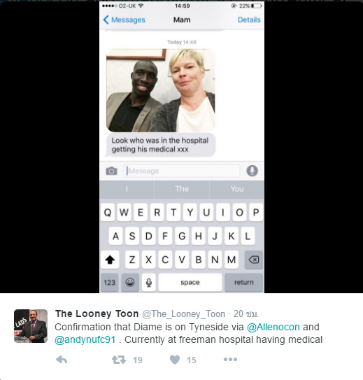 เป็นอีกรายที่แฟนพบว่ากำลังตรวจร่างกายที่ นิวคาสเซิ่ล