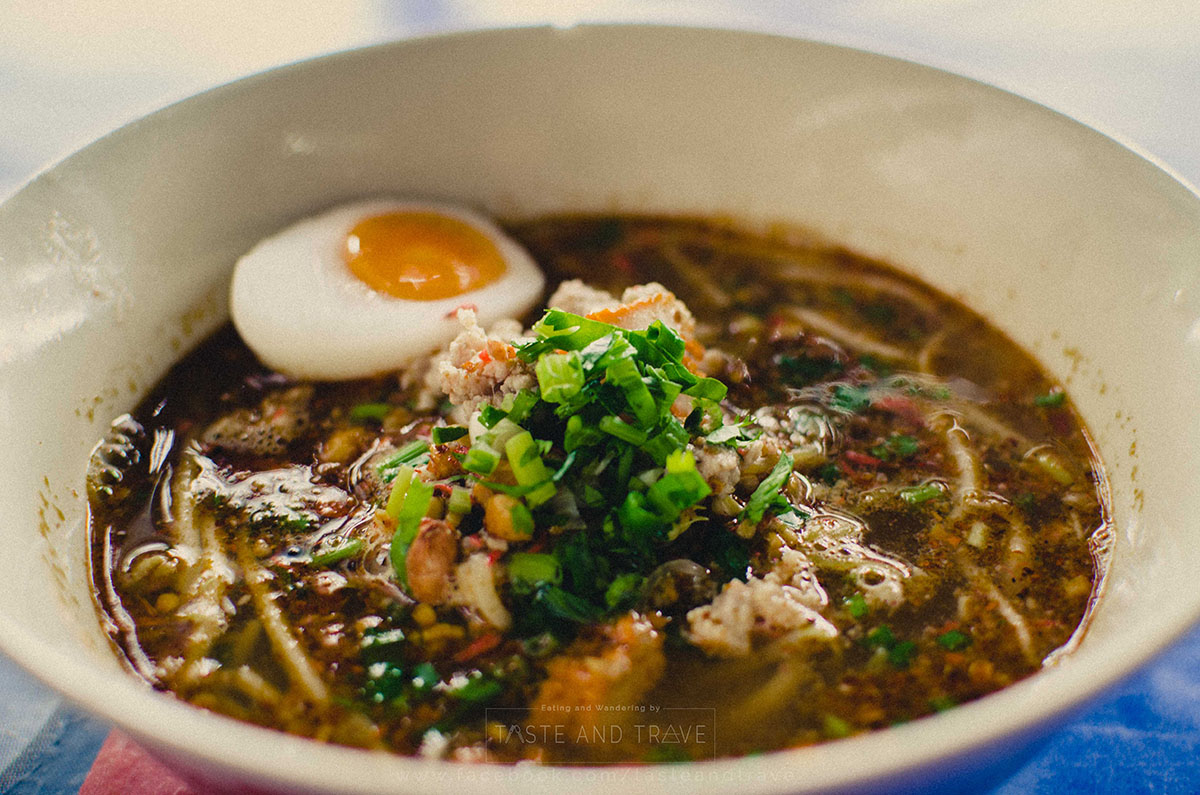 ร้านนี้ลูกค้าส่วนใหญ่เป็นนักท่องเที่ยว และร้านค่อนข้างแน่น เมนูที่สั่งไปคือ เกาเหลาต้มยำ และ บะหมี่ต้มยำ ต้มยำร้านนี้จะเสริ์ฟคู่กับไข่ต้มยางมะตูม ซึ่งไข่อร่อยจริงจัง แต่น้ำซุปยังไม่ถึงรสต้มยำสักเท่าไหร่ เครื่องที่มีได้แก่ หมูแดง หมูสับ และไข่มะตูมครึ่งฟอง เมนูเกาเหลามากับผักที่เป็นถั่วงอกอย่างเดียวไม่ค่อยมีความหลากหลาย โดยรวมแล้วร้านนี้อาหารยังไม่ค่อยถูกปากพวกเราเท่าไหร่ แต่ถ้าใครเป็นแฟนก๋วยตี๋ยวไข่ยางมะตูม ก็อาจจะชอบนะะ