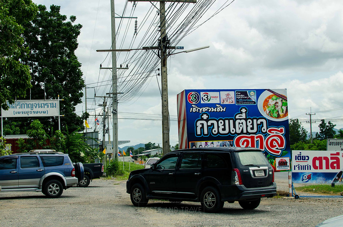 ถ่ายรูปเล่นกันไปมาเผลอแว๊ปเดียวผ่านไปชั่วโมงนึงแล้ว ท้องก็เริ่มร้อง แต่ด้วยchecklist ถัดไปเราจะไปกันที่ทางรถไฟสายมรณะ ถ้ำกระแซ จึงหาร้านก๋วยเตี๋ยวระหว่างทางกิน ไปเจอร้านเตี๋ยวตาลีและเตี๋ยวโอ่งอยู่ติดกัน เป็นก๋วยเตี๋ยวต้มยำทั้งคู่ เลือกไม่ถูก เลย..เอาว่ะ กินมันทั้งสองร้านเลย จริงๆก็อยากรู้ด้วยว่าจะอร่อยทั้งคู่มั๊ย