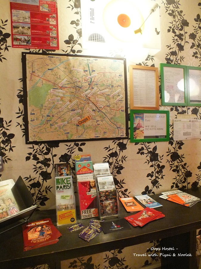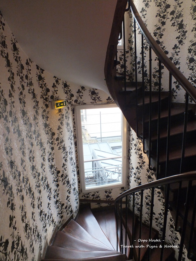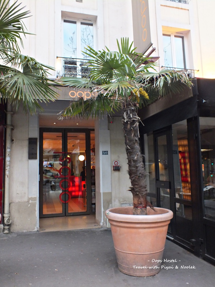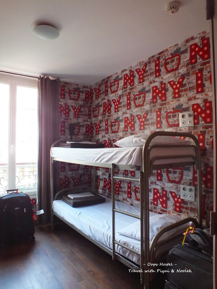 Oops Hostel เป็น Hostel ที่เดินทางไปมาสะดวกเพราะอยู่ใกล้สถานีรถไฟใต้ดินสองสถานีคือ des Gobelins กับ place d'italie อยู่ที่ว่าชอบแบบเดินขึ้นเนินหรือลงเนิน มีห้องน้ำในตัว ซึ่งก็เป็นธรรมดาของที่พักในเมืองขนาดใหญ่ ที่พักจะมีขนาดเล็กแค่พอให้ได้นอนพักผ่อน มีสิ่งอำนวยความสะดวกตามสมควร ที่นี่มีบริการอาหารเช้ารวมไว้ในราคาที่พักแล้ว เป็นย่านที่ปลอดภัย ไม่มีอะไรน่ากลัว ที่นี่เข้า-ออกห้องด้วยระบบคีย์การ์ด มีไวไฟให้ใช้ฟรี สัญญาณแรงดีไม่มีตก และหากประสงค์จะปรุงอาหารรับประทานเขาจะมีพื้นที่เฉพาะให้อีกห้องหนึ่งสามารถติดต่อขอกุญแจจากพนักงานได้ บรรยากาศโดยรวมถือว่าดี แม้จะแคบไปนิด แต่เวลาส่วนใหญ่ของพวกเราคือการออกไปเที่ยว ความกว้างหรือสะดวกสบายของห้องพักจึงไม่ได้มีความหมายอะไรกับพวกเรามากนัก