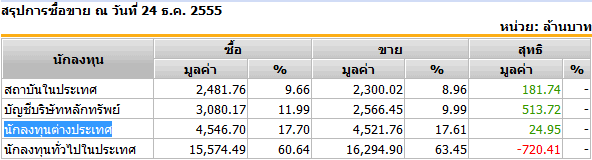 สรุปการซื้อขาย ณ วันที่ 24 ธ.ค. 2555