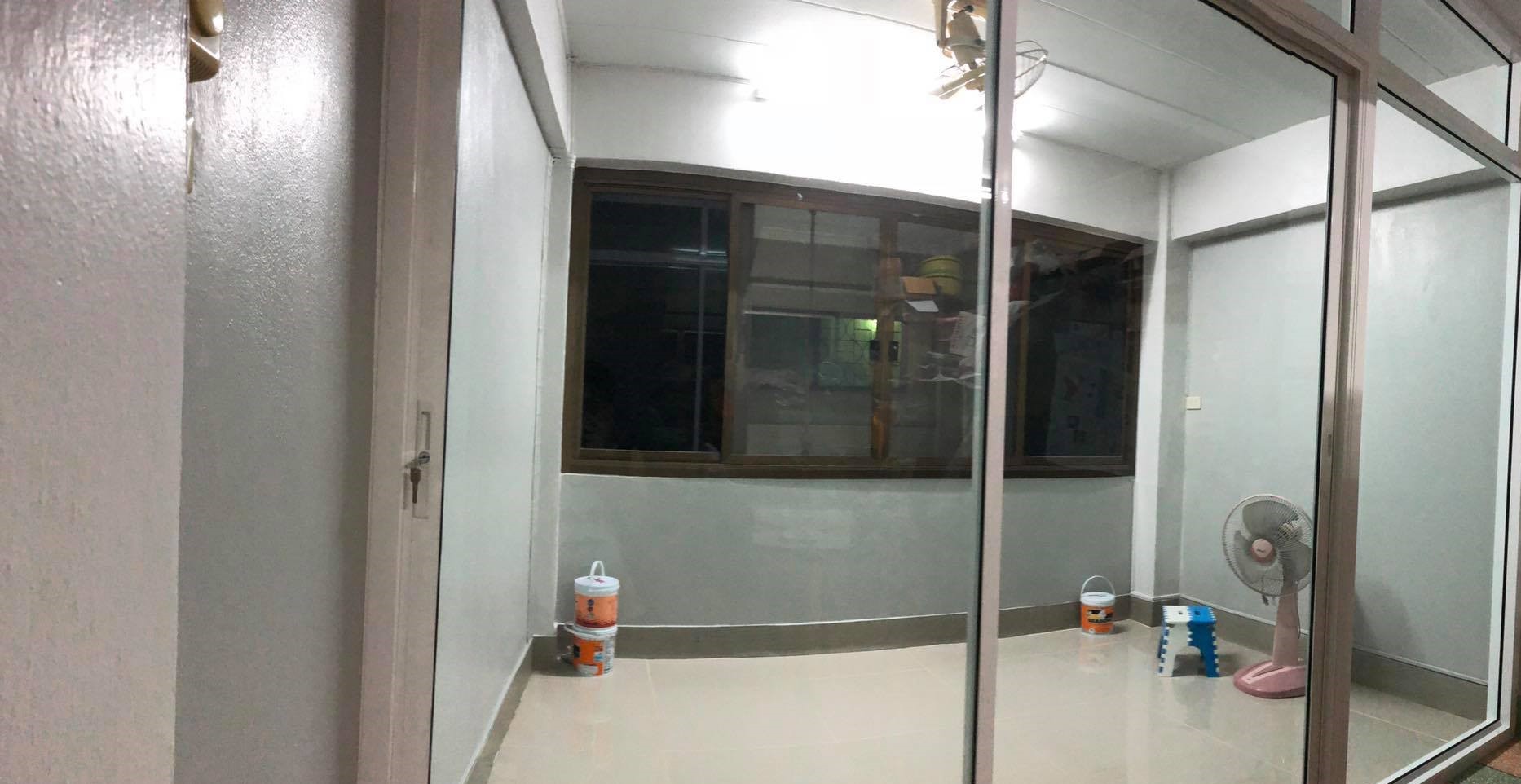 หลังจากเคลียร์ห้องแล้ว จะเห็นร่องรอยอารยธรรม คราบฝุ่นและรอยต่างๆ จึงต้องลอกสีห้องออกแล้วทาสีทับ