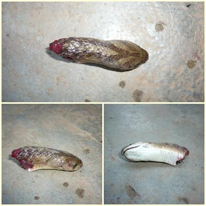 เมื่อเช้านี้ลูกแมวเอาหางงูมาเล่นสงสัยจะกินส่วนตัวไปแล้ว แต่แม่เอาไปทิ้งแล้ว บังเอิญไปเจอส่วนหัวคะ เลยอยากทราบว่าเป็นงูอะไรคะ มีพิษรึป่าว