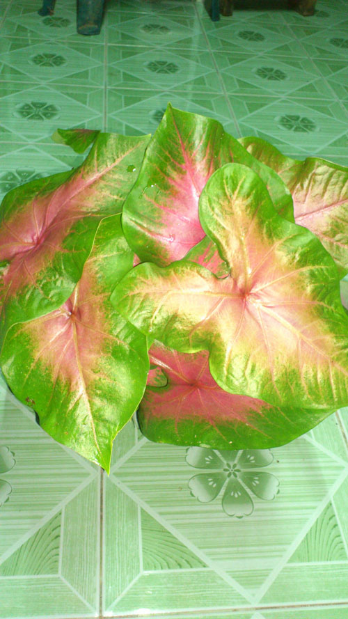 แจกบอนสี สีชมพูปนเขียว