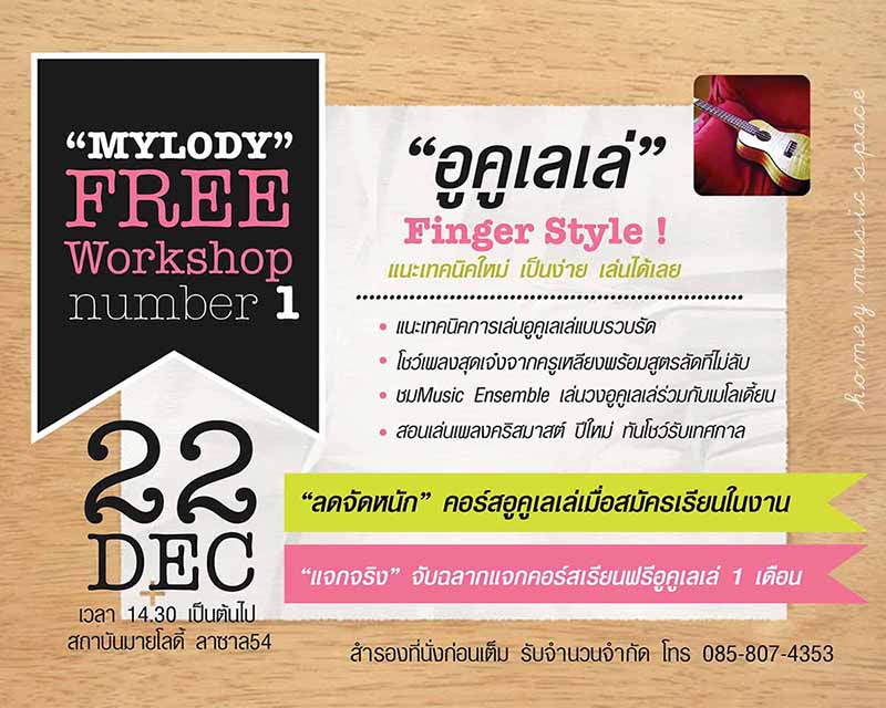 มายโลดี้ เอาใจคนรักอูคูเลเล่ จัดกิจกรรมเวิร์คช้อปฟรี !!