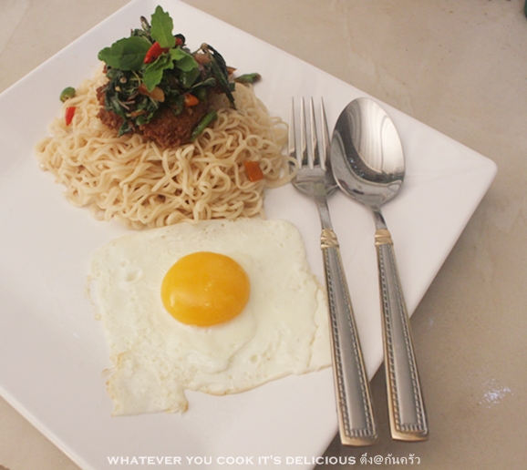 มื้อกลางวันเอาบะหมี่ซองมาทำกัน "บะหมี่กะเพราหมูทอดไข่ดาว"