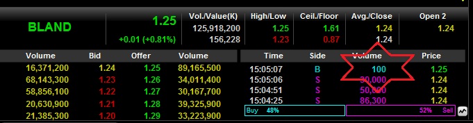 Bland เห็นซื้อ ทีละ 100หุ้น สวนกับการเทขาย 1.24