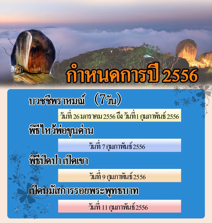 กำหนดการการนมัสการรอยพระพุทธบาท ปี 2556