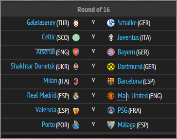 ผลการจับฉลาก UEFA CHAMPIONS LEAGUE รอบ 16 ทีมสุดท้าย