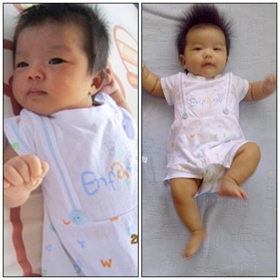 แรกเกิดผมเรียบแปล้ แต่ไหงไปๆมาๆ กลายเป็นทรงพั้งค์ ทรงโมฮอว์ก ไปได้นะเนี่ยะ แม่ๆทราบไหมคะว่าผมมันจะลงมาเรียบๆถาวรเมื่อไหร่ 555 ใครเห็นก็ทัก ขนาดหมอเด็กเราเงียบๆเรียบร้อยๆๆ ยังทักขำๆเลยค่ะ ผมน้องตลกจัง คงคิดในใจ ยังกะโดนผีหลอก ^^