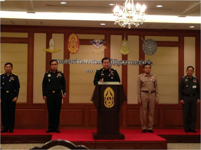 20 ธันวาคม 2555 go6TV - พล.อ.ธนะศักดิ์ ปฏิมาประกร ผบ.สส. พร้อมด้วย พล.อ.ประยุทธ์ จันทร์โอชา ผบ.ทบ. พล.ร.อ.สุรศักดิ์ หรุ่นเริงรมย์ ผบ.ทร. พล.อ.อ.ประจิน จั่นตอง ผบ.ทอ. และ พล.ต.อ.อดุลย์ แสงสิงแก้ว ผบ.ตร. แถลงผลการประชุมผู้บัญชาการเหล่าทัพ ถึงปัญหาความไม่สงบในพื้นที่ 3 จังหวัดชายแดนใต้ว่า รัฐบาลเป็น:-)านโดยมี 17 กระทรวง 66 หน่วยงาน ที่เกี่ยวข้องร่วมแก้ไขปัญหา ในส่วนของกองทัพก็ทุ่มเททรัพยากรทั้งหมดลงไปในพื้นที่ และพร้อมสนับสนุนทุกภารกิจที่ กอ.รมน.ร้องขอ