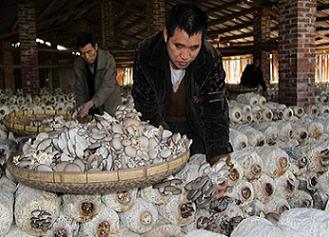 “ปัจจุบัน การผลิตเห็ดของกว่างซีได้พัฒนาสู่โครงสร้างแถบอุตสาหกรรมเห็ดซึ่งครอบคลุมพื้นที่ 10 เมือง 30 อำเภอ เช่น กุ้ยหลิน เฮ่อโจว ไป่เซ่อและชินโจวเป็นต้น”