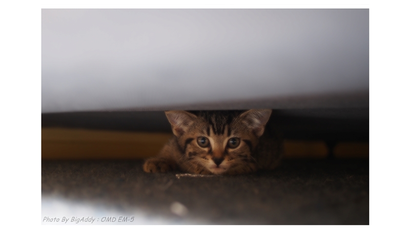 รูปแรก แมวหนีไปหลบใต้เตียง วางกล้องยัดเข้าไปใต้เตียงนิดนึง แล้วเปิดจอพับออกมา แตะที่จอถ่าย เพิ่งจะได้ใช้ประโยชน์จอพับก็ครั้งนี้ละครับ