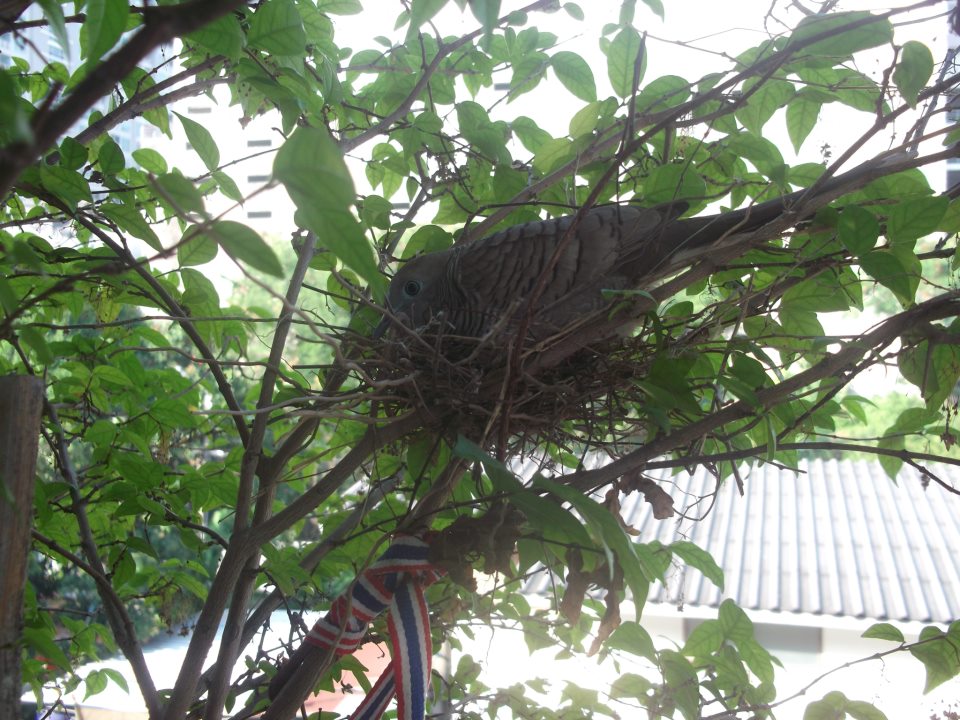 มีแม่นกมาสร้างรัง ออกไข่ กกไข่ อยู่ที่ระเบียงบ้านมาเป็นสัปดาห์แล้ว ???