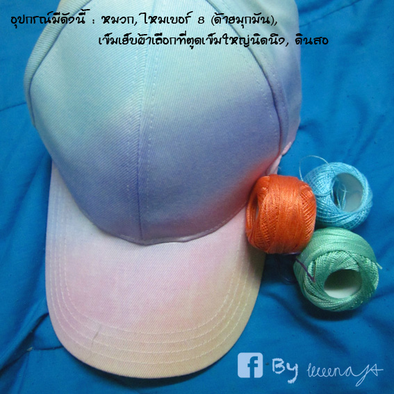 ลองปักหมวกดูค่า ใบแรกอาจบูดๆ เบี้ยวๆ นิดนึง ^^
