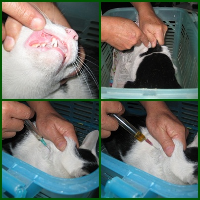 - สัปดาห์ต่อไป ไปพบคุณหมอตามนัด ตรวจเลือด ปรากฏว่า ค่าเม็ดเลือดแดงยังคงต่ำอยู่ เม็ดเลือดขาวเพิ่มขึ้น คุณหมอจ่ายยาและนัดดูอาการอีก 2 สัปดาห์ ยาที่ให้คือยาก้างปลา, ยาเพิ่มภูมิ, วิตามินบีรวม, ยาบำรุงเลือด และอาหารเปียกสำหรับสัตว์ป่วย