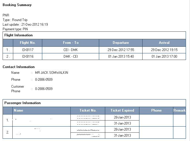 ขายตั๋วเครื่องบิน Orient Thai ไปกลับ เชียงราย กรุงเทพ ใบละ 4,200 2 ใบ ด่วนมาก หน้าเวปขายใบละ 5,100 บาท