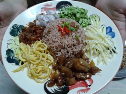 อาหารเย็นนี้ ข้าวคลุกกะปิฝีมือเราเองค่ะ ครั้งแรกในชีวิตค่ะ