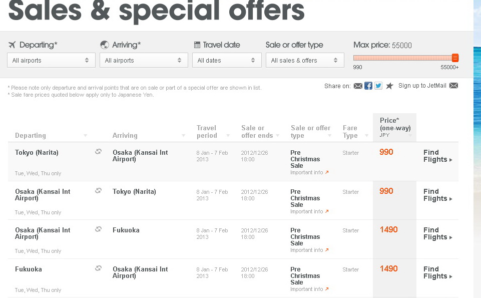 ジェットスターからのちょっと早めのクリスマスプレゼントは、日本国内線セールです!