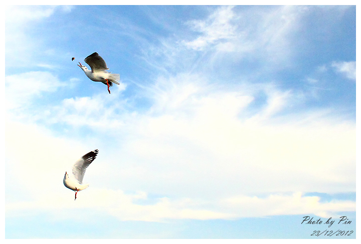 วันนี้ โลกซีกเหนือยังหนาวอยู่ นางนวล เลยลางานจากเมืองจีน มาเที่ยวสถานตากอากาศบางปู ที่เมืองไทย มาหาอาหารกิน อีกไม่กี่วันหมดหนาว ก็คงอพยพกลับ พาสาวไปเดินเล่น ไปด