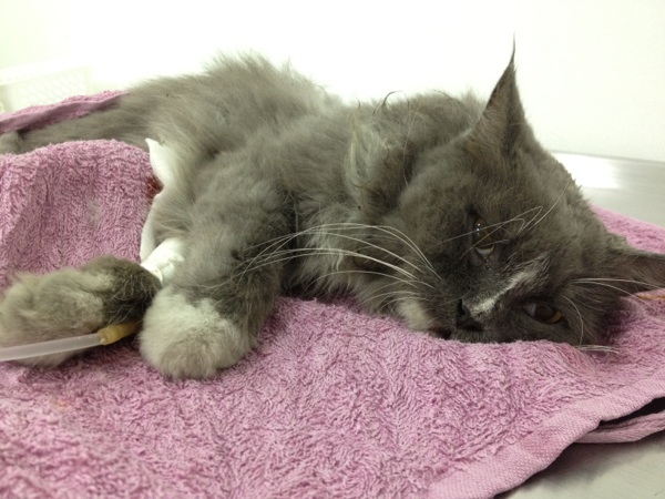พอดีผมเจอลูกแมวโดนรถชนอยู่กลางถนน จึงรีบไปเอาน้องเข้ามา แต่ผมอยู่เชียงใหม่ (พอดีลงลงมาประชุมไม่มีรถมาครับ) และไม่สะดวกหลายๆเรื่องครับ ผมจึงไปขอกล่องจาก7มาใส่น้องใว้ เเละได้เขียนขอความช่วยเหลือใว้ ผมจึ