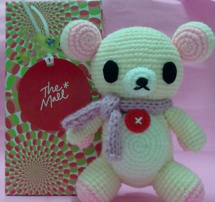 เป็นตัวแทนส่งของขวัญ เลยรีบปั่นถัก korilakkuma (ถักไปรื้อไปเพราะคิดแพทเอง ออกมาไม่ค่อยเหมือนน555)