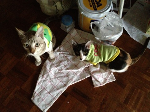 เดี๋ยวเป็นอย่างเรา วันนี้เริ่มจามกันแล้ว ปกติก็ใส่ให้ แต่ยัยอุ่นไม่ชอบจะร้องโวยวายๆ ข้าวไม่ยอมกิน ส่วนลัคกี้เสื้อยังหลวมหน่อยๆ เขาก็ถอดออกเองซะเลย เมื่อคืนนี้เลยไม่พยายามใส่ให้ เพราะรู้สึกไม่มีประโยชน์ 55555