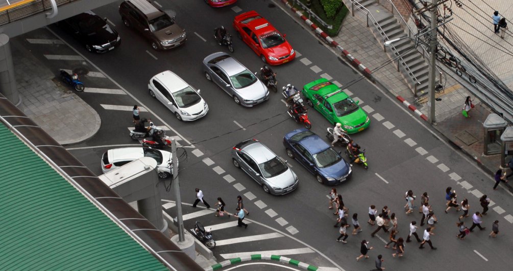 เดินข้ามถนน ทั้งๆที่สะพานลอยอยู่บนหัว