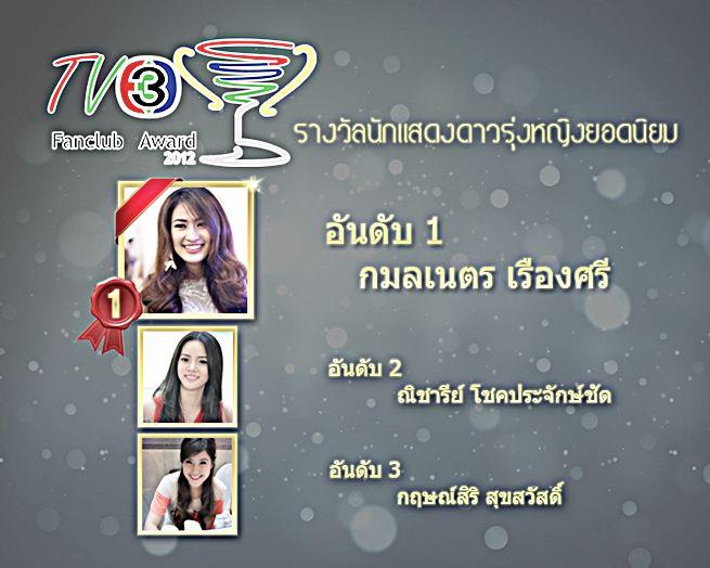 ขอแสดงความยินดีกับรางวัลนักแสดงดาวรุ่งหญิงยอดนิยมแห่งปีจากช่อง 3