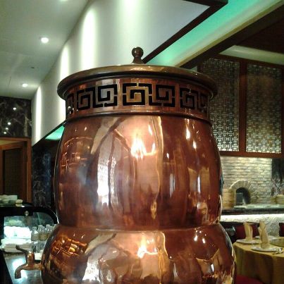 บังเอิญได้ไปประชุมที่ รร. อิสตินแกรนด์สาทร เคยได้ข่าวว่า ร้าน Chef Man ที่ชั้น 3 อาหารจีนอร่อยมาก พยายามจองมาสี่เดือน ไม่เคยได้โต๊ะเลย วันนี้ถือโอกาสซื้อกลับบ้าน คือ ซาลาเปาครีมไหลของที่นี่ ดังมาก มีคนชื่นชม ก็อยากลองบ้าง ถ่ายมาแค่ หม้อน้ำเต้าใส่เก็กฮวย ใหญ่อลังมาก ลองดูรูปกาที่อยู่ใกล้ๆจะรู้ว่า ใหญ่แค่ไหน