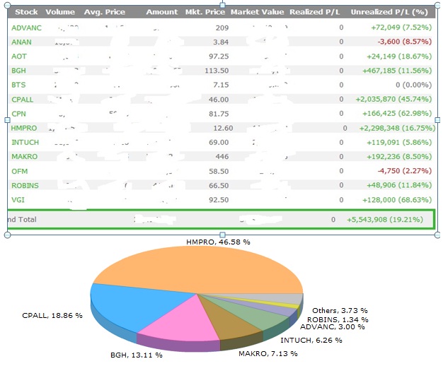 กำไรในพอร์ตที่ยังถืออยู่ (ผมยังถือเต็มพอร์ต 100%)
