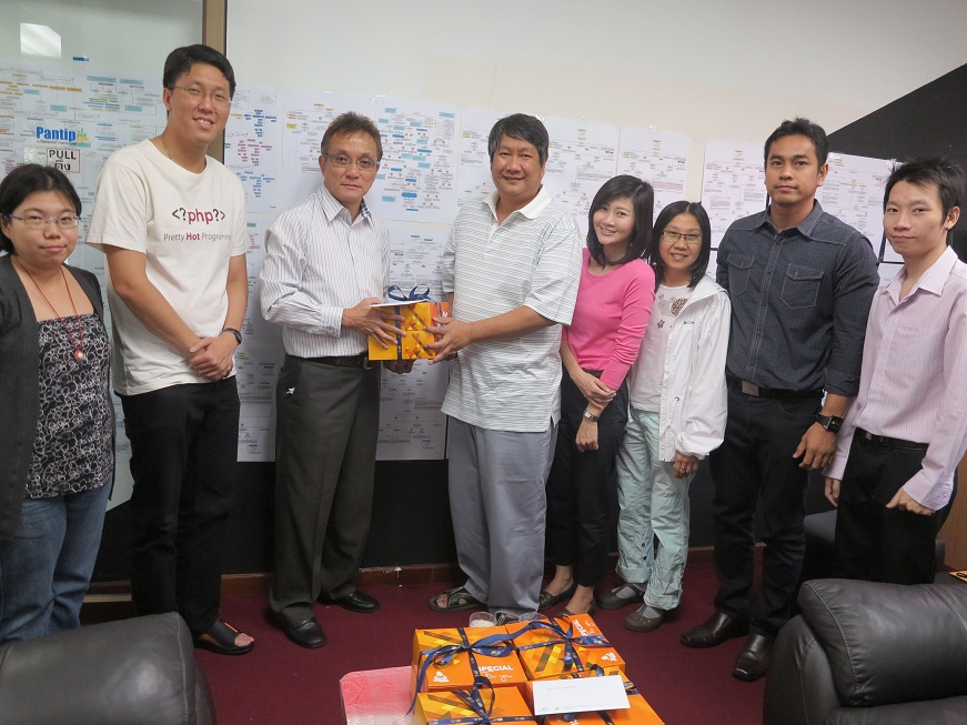 บริษัท ซีพี ออลล์ จำกัด (มหาชน) มอบกระเช้าของขวัญ เนื่องในโอกาสวันขึ้นปีใหม่ 2556 แก่คุณวันฉัตร ผดุงรัตน์ กรรมการผู้จัดการและผู้ก่อตั้งเว็บไซต์ Pantip.com