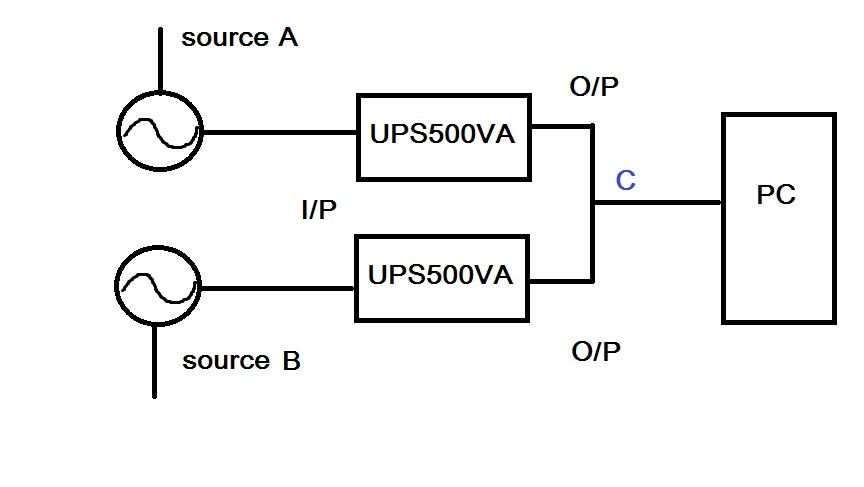 โดยที่เอา UPS 500 VA มาต่อพ่วงเข้าไปอีกตามรูป ใครพอมีความรู้ เกี่ยวกับการต่อ UPS แบบนี้มั้ยครับ