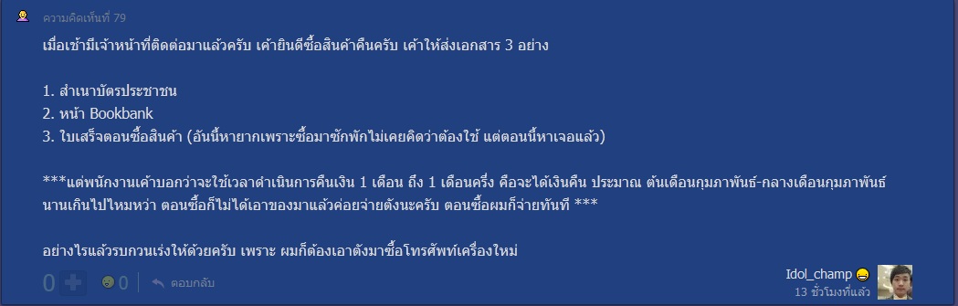 แบบสมมุติว่าส่งซ่อมทีนึงเป็นเดือนๆรอแล้วรออีกซ่อมเสร็จเจ๊งอีก จะคืนตังเลยไหมหรือต้องมาโพสในพันทิปถึงคืน